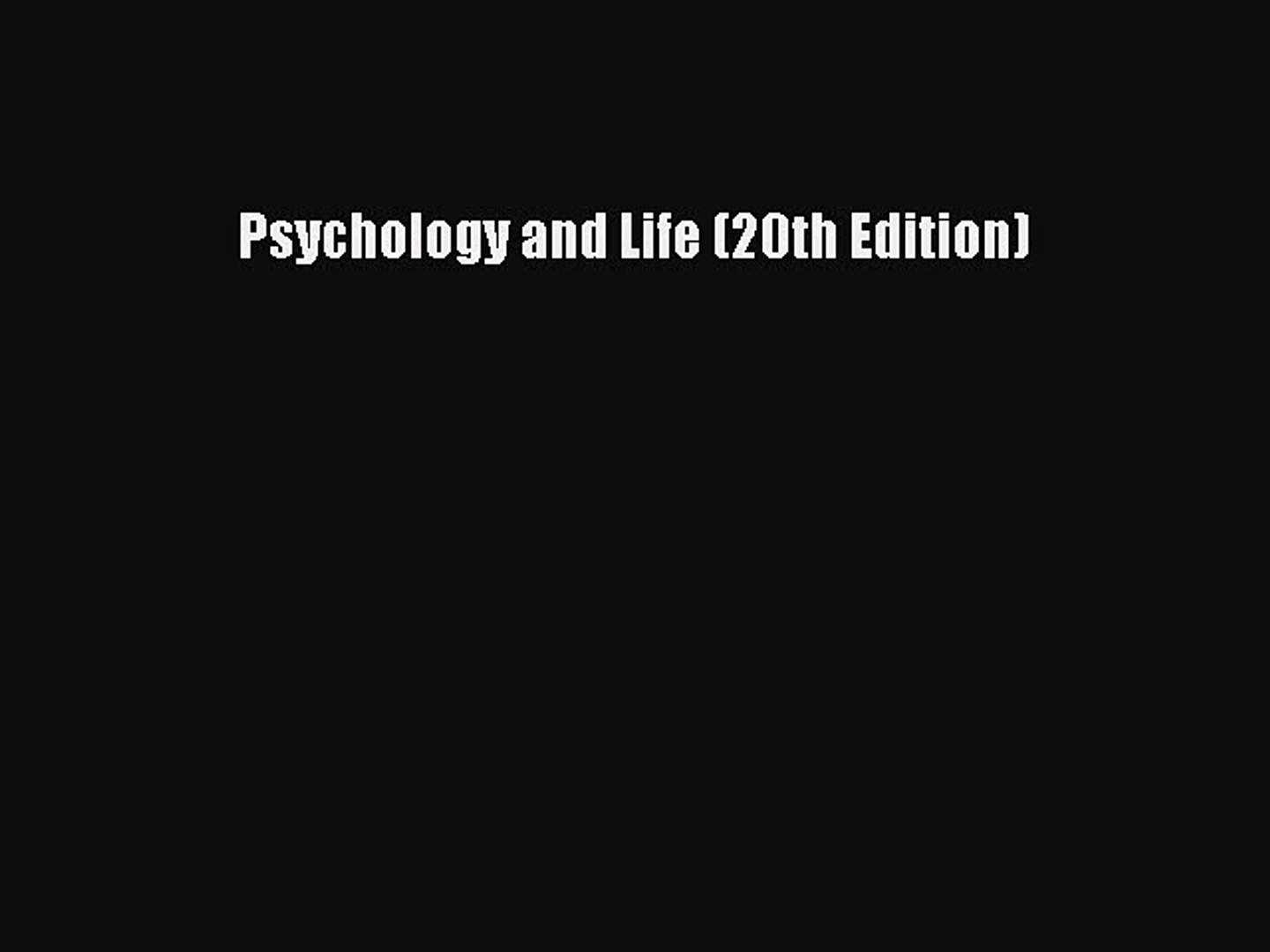 Free Download Psychology And Life 20th Edition Book Online Video