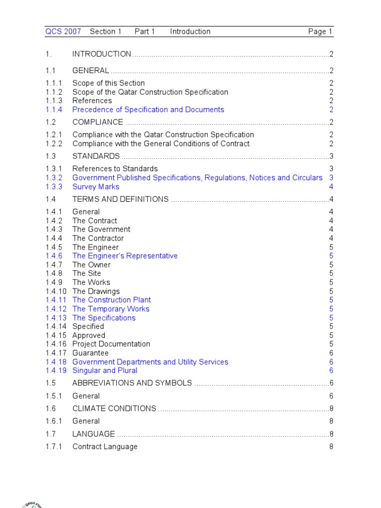 Qatar work zone traffic management guide wztmgqatar national construction standards 2010. Qatar national constructionqatar health safety law. Back to table of contents for section. 11 qatar construction specification all work to be executed under this contract shall be carried out in accordance with the qatar construction specifications qcs 2014 issued under memorandum from the ministry of environment and all subsequent revisions and addenda prior to the date of the announcement inviting tenderers.