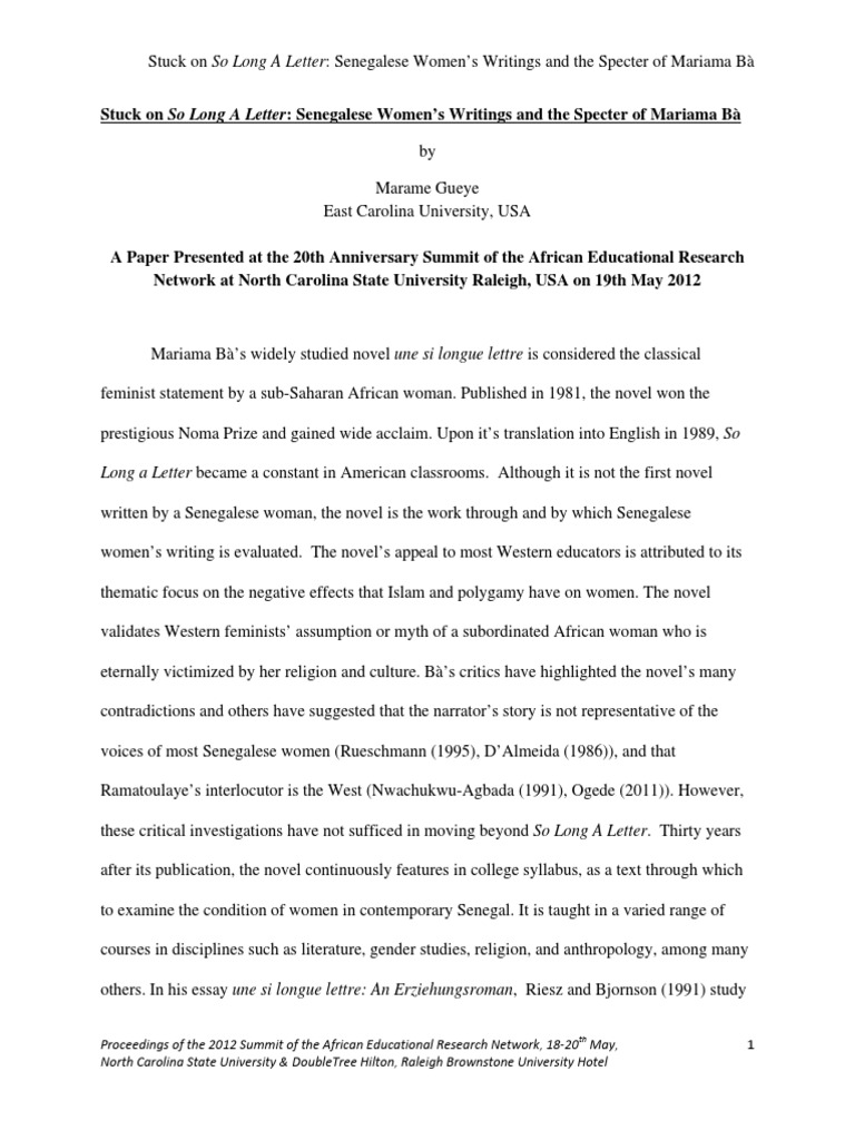 So Long A Letter Feminism Ethnicity Race Gender