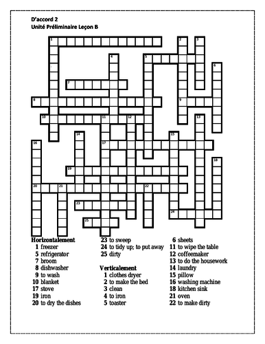 D Accord 2 Unite Preliminaire Lecon B Crossword Teaching Resources