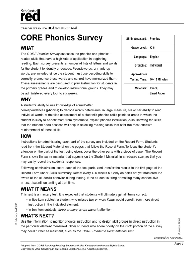 Assessment The Core Phonics Survey Assesses The Phonics And