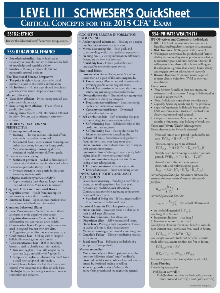 Earlier we published chartered financial analyst cfa course details eligibility fee duration salary. Now you can get cfa level 1 schweser notes wiley cfa level 1 books preparation material. Use pdf download to do whatever you like with pdf files on the web and regain control. Qbank build custom exams to quiz yourself on what youve learned.