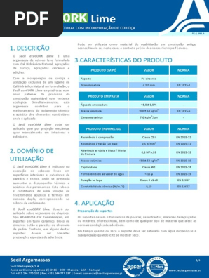 Ficha Tecnica Secil Ecocork Lime Argamassa Materiais