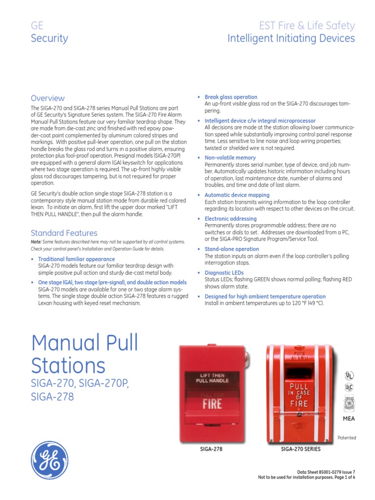 Manual Pull Stations Models Siga 270 Siga 270p Siga Pdf Free