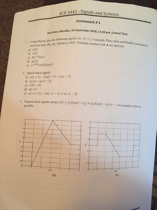 Solved Ece 3443 Signals And Systems Homework 1 10 Septe