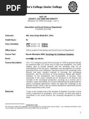 Soc 115 Cape Course Outline Social Research Sociology Free