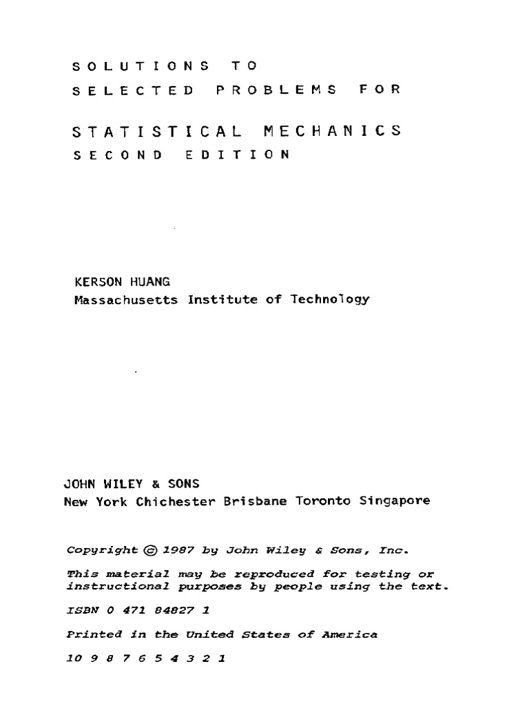 Solution Manual Of Statistical Mechanics Kerson Huang Pdf